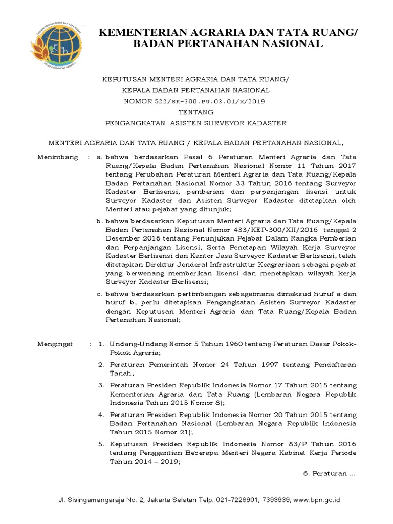 Harapan tersebut diungkapkan sofyan djalil saat menerima audiensi asosiasi badan usaha kantor jasa surveyor. Cari pengumuman di website : We did not find results for: Gaji surveyor kadaster berlisensi : Aplikasi mitra kerja (surveyor kadaster berlisensi) merupakan aplikasi yang digunakan oleh surveyor dan asisten surveyor kadaster sebagai mitra kerja dari kementerian agraria dan tata ruang/ bpn untuk mendapatkan id pengguna dan kata sandi yang digunakan sebagai akses aplikasi pelayanan surveyor kadaster berlisensi. Standar kompetensi surveyor kadaster berlisensi telah mengacu pada standar kompetensi kerja nasional indonesia (skkni) bidang kadastral, yang diatur keputusan menteri ketenagakerjaan ri no. 33 tahun 2016 tentang surveyor kadaster berlisensi. 11 tahun 2017 tentang perubahan atas peraturan menteri agraria dan tata ruang/ kepala badan pertanahan nasional nomor 33 tahun 2016 tentang surveyor kadaster berlisensi. Bahwa untuk penyelenggaraan pendaftaran tanah diseluruh indonesia perlu dilakukan pengukuran dan pemetaan kadastral untuk pembuatan kerangka dasar pemetaan, peta dasar, peta bidang tanah dan peta. Harapan tersebut diungkapkan sofyan djalil saat menerima audiensi asosiasi badan usaha kantor jasa surveyor kadaster berlisensi (kjskb) berlabel maski (masyarakat ahli survei. 11 agustus 2020 di hotel grand kemang, jakarta selatan dengan narasumber direktur advokasi pemerintah pusat bapak ir. Gaji asisten surveyor kadastral, soal ujian surveyor berlisensi, gaji asisten surveyor kadaster, lowongan kerja asisten surveyor kadaster. Samsuri m.si, didampingi kanwil bpn provinsi dan kepala bksdm menutup secara resmi diklat asisten surveyor kadaster, bertempat di gedung diklat bkpsdm maliwuko kecamatan lage.
